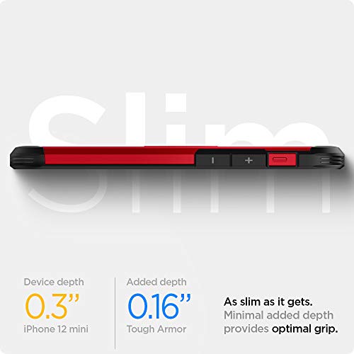Spigen - جراب موبايل صغير متين وشديد التحمل متوافق مع ايفون 12 من سبيجن - احمر حافظة بسيطة بولي كربونات يوريثين البولي الحراري
