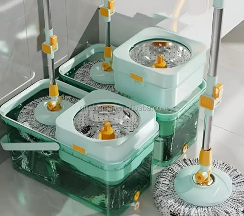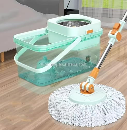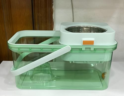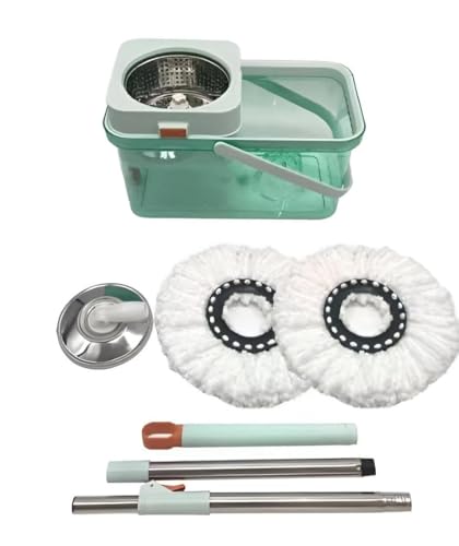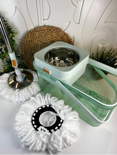 Generic - مجموعة ممسحة دوارة ودلو - دوران 360 درجة، هيكل من الاكريليك والستانلس ستيل، لمسة نهائية بلون اخضر فاتح، دلو بسعة كبيرة مع سدادة تصريف، يتضمن راسي ممسحة بديلين لسهولة الاستخدام