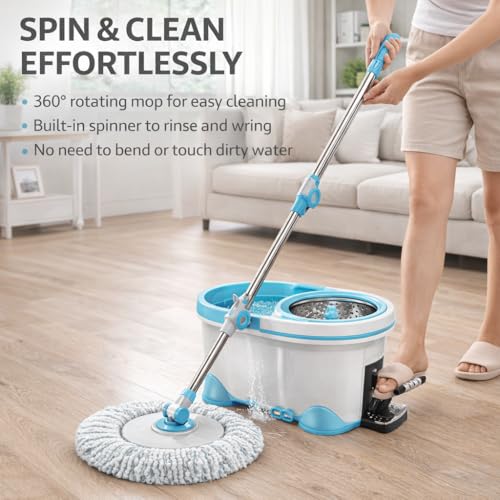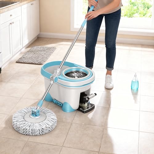 - مجموعة ممسحة دوارة ودلو للتخلص من الفوضى الواقعية - ادخل على دواسة القدم المصنوعة من الستانلس ستيل، وعصر سريع وعد إلى يومك مع انحناء أقل وضغط أقل ومتاعب أقل.