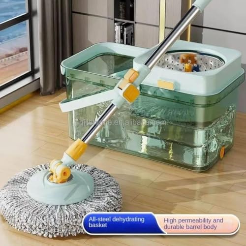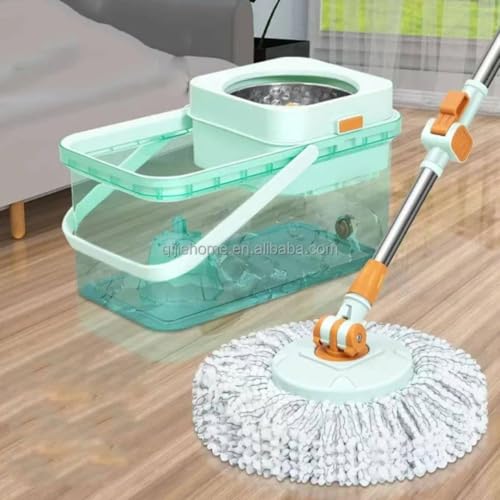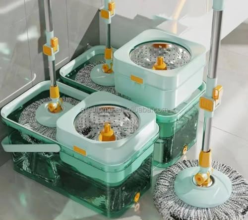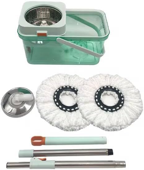 Generic - مجموعة ممسحة دوارة مع عصارة، لون أخضر فاتح وبرتقالي، نظام تنظيف الأرضيات مع دلو مزدوج ورأس ممسحة من الألياف الدقيقة مع 2 غيار