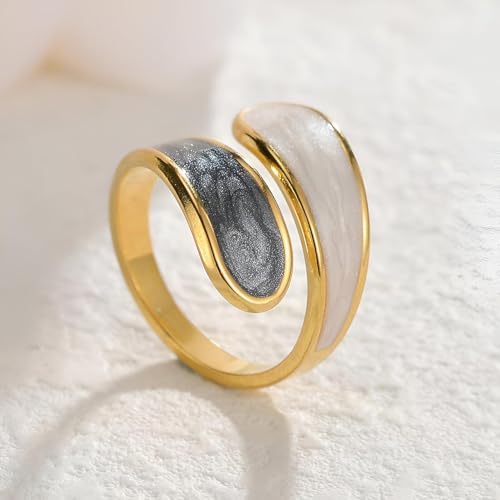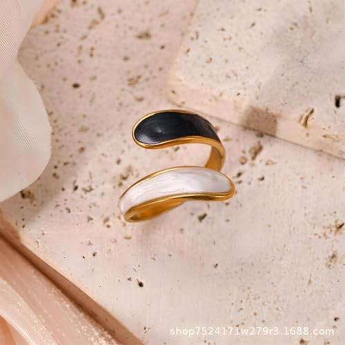 Generic - خاتم حلزوني - اكسسوار انيق من الستانلس ستيل بنمط اسود وابيض جريء، يوفر لمسة مميزة لعشاق المجوهرات العصرية