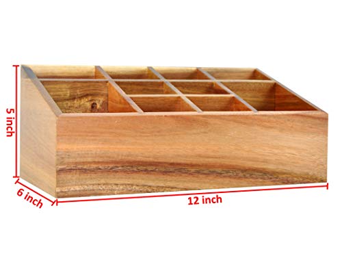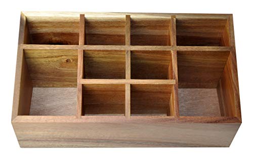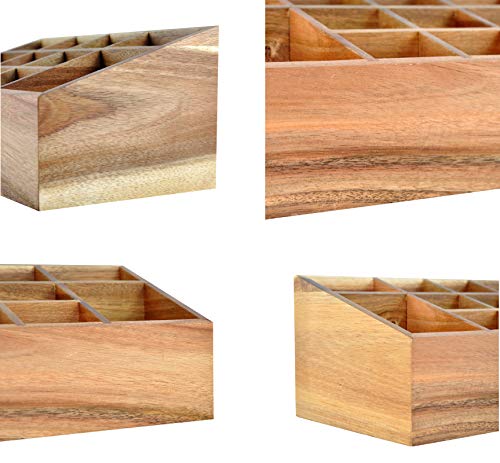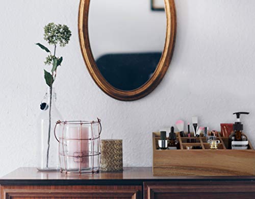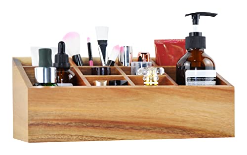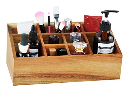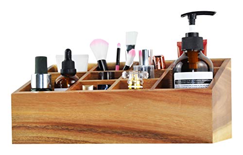 Spiretro - منظم مستحضرات التجميل حامل الفرش صينية تخزين بـ 10 أقسام اكسسوارات الشعر جراب عرض المكياج لسطح طاولة الزينة أدراج الحمام سطح التسريحة من خشب اكاسيا الصلب بني طبيعي سبيرترو