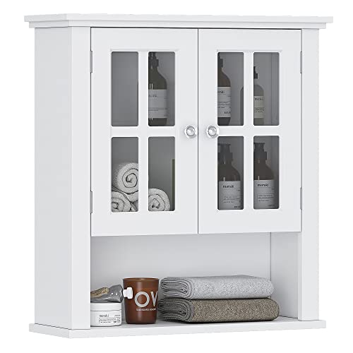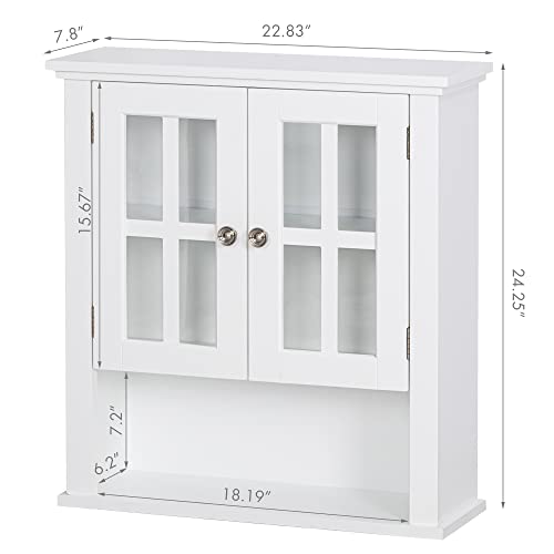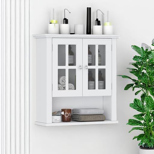 Spirich - سبيرش خزانة حائط للحمام المنزلي فوق المرحاض، خزانة تخزين ادوية معلقة على الحائط مع رف قابل للتعديل وابواب زجاجية مزدوجة، ابيض، خشب
