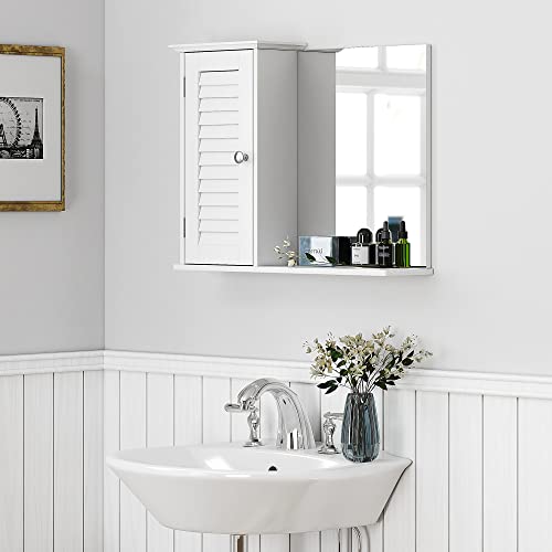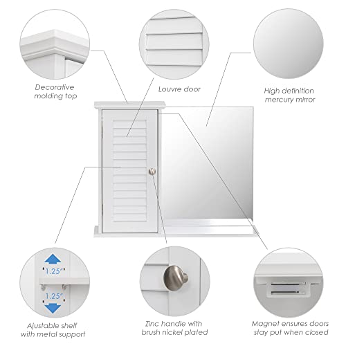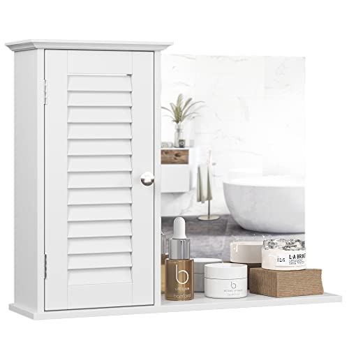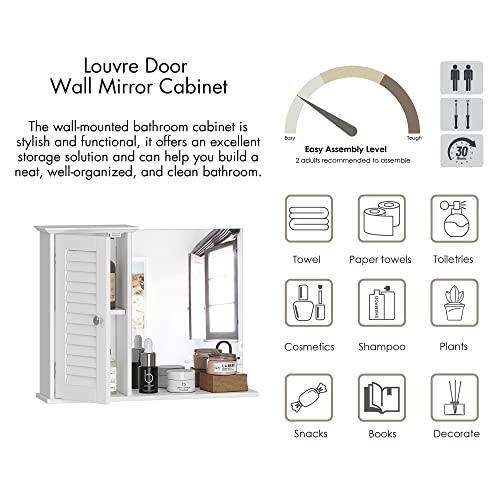 Spirich - سبيرش خزانة حائط للحمام المنزلي مع مرآة، خزانة تخزين تثبت على الحائط فوق المرحاض، خزانة ادوية معلقة مع باب، ابيض، خشب