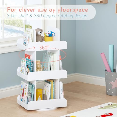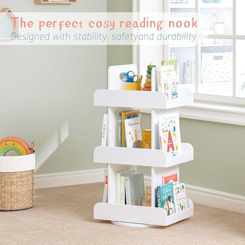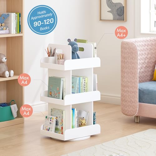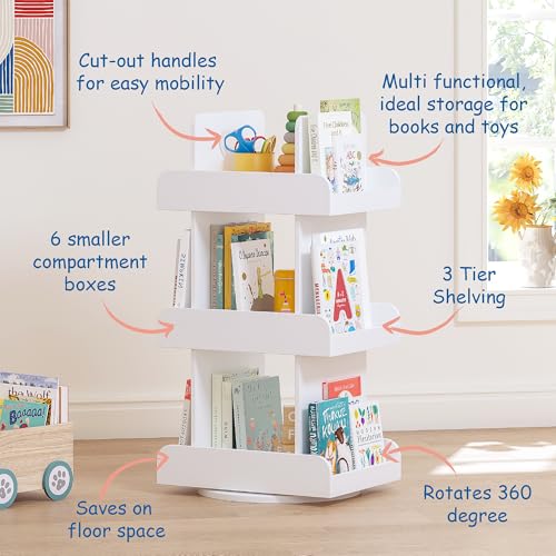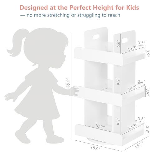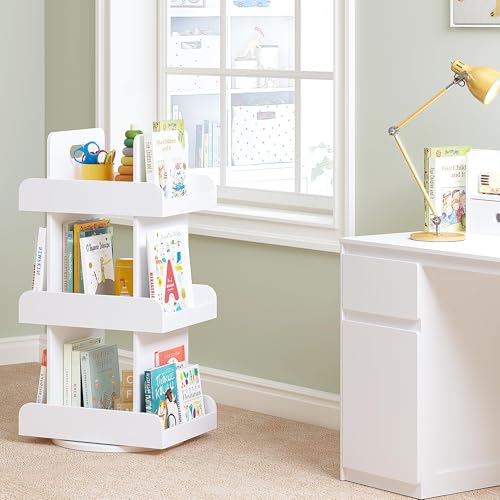 Spirich - سبيرش رف كتب دوار للاطفال، خزانة كتب دوارة ليزي سوزان مع شاشة عرض للكتب، 3 طبقات دوارة 360 درجة، منظم زاوية دوار عمودي، ابيض