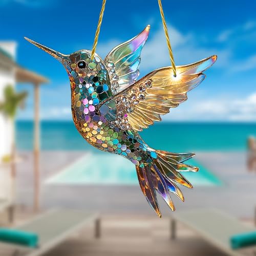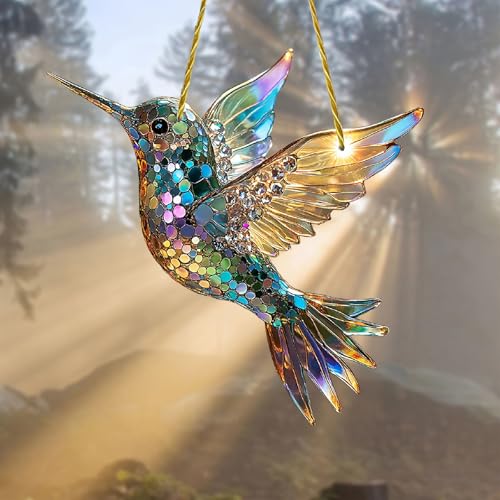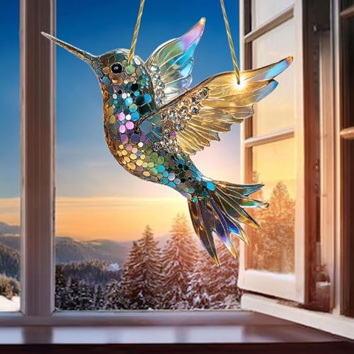 ANNUOZE - معلقة نافذة من الاكريليك الملون، ديكور معلق للنافذة 15 سم، لوحة زينة معلقة على شكل طيور، لوحة فنية ملونة على الحائط للأم والجدة ومحبي الطيور من سبيريت بيردز (B)