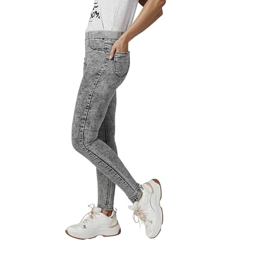 Splash - سبلاش بنطلون ضيق منسوج بطول كامل مع تفاصيل جيب، لون رمادي، مقاس 32 6292356619409