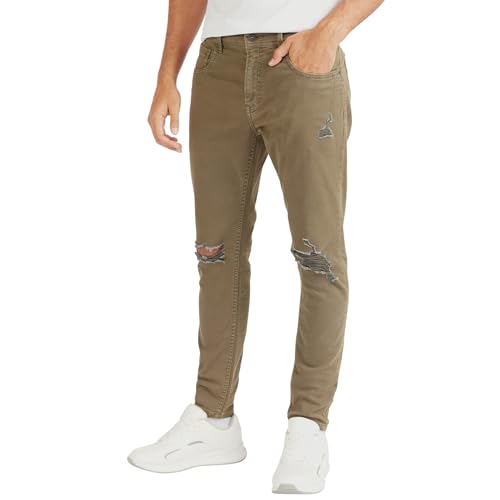Splash - سبلاش بنطلون جينز ممزق متوسط الارتفاع مع زر للاغلاق من لي كوبر، لون اخضر، مقاس 38 6292375967499