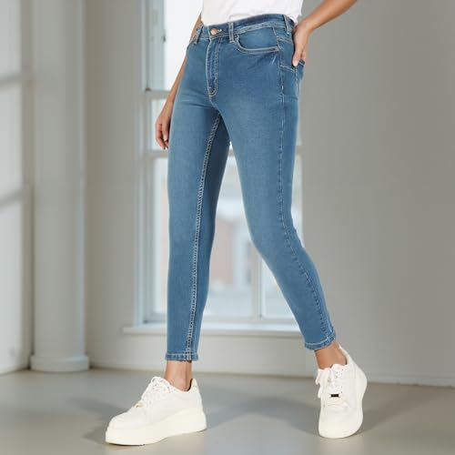 Splash - سبلاش بنطلون جينز متوسط الارتفاع بازرار للاغلاق وجيوب بلون ازرق - مقاس 29 6292377112705