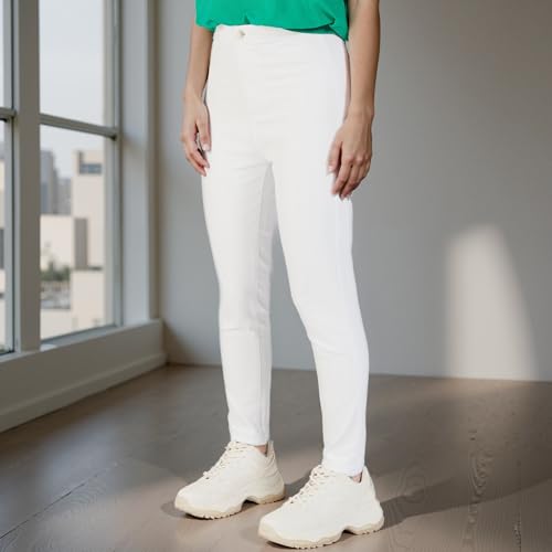 Splash - سبلاش بنطلون جينز متوسط الارتفاع مع زر اغلاق بلون ابيض - مقاس 28 6292377113016