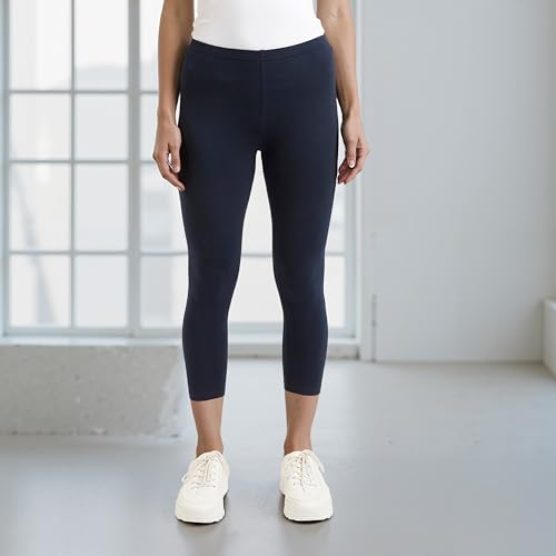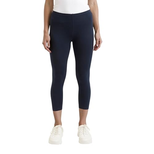 Splash - سبلاش بنطلون لجينجز ضيق 3/4 مع حزام خصر مطاطي مريح مرن بلون كحلي - مقاس 18 6292376078064