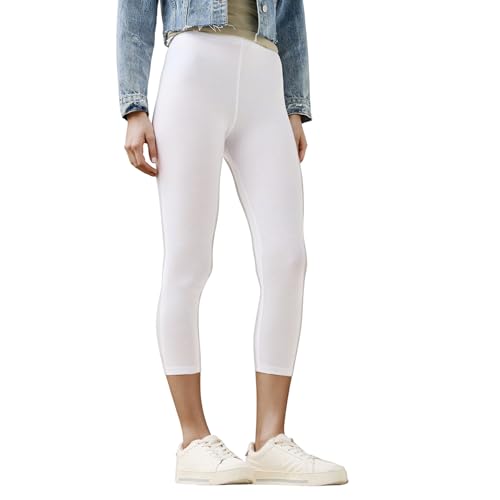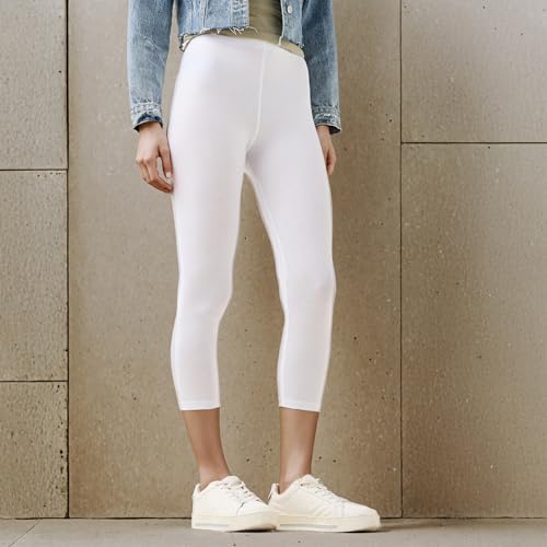 Splash - سبلاش بنطلون لجينجز ضيق 3/4 مع حزام خصر مطاطي مريح مرن بلون ابيض - مقاس 16 6292370329223