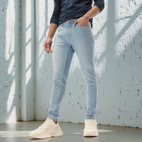 Splash - سبلاش بنطلون جينز بقصة سكيني مع تفاصيل جيب وحلقات للحزام، لون ازرق، مقاس 30 6292361773868