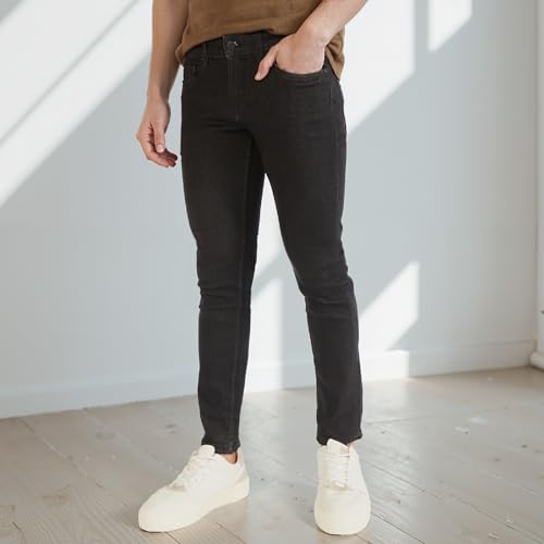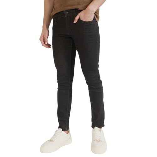 Splash - سبلاش بنطلون جينز بقصة ضيقة مع جيوب وازرار للاغلاق، لون اسود، مقاس 34 6292373921752