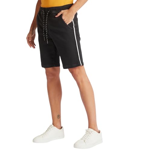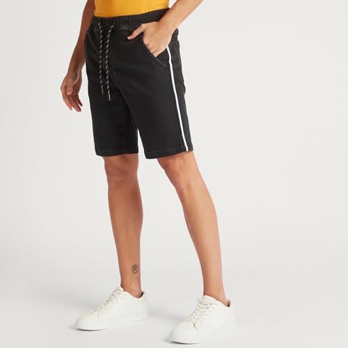 Splash - سبلاش شورت جينز سادة متوسط الارتفاع بجيوب ورباط اسود - مقاس S 6292374328673