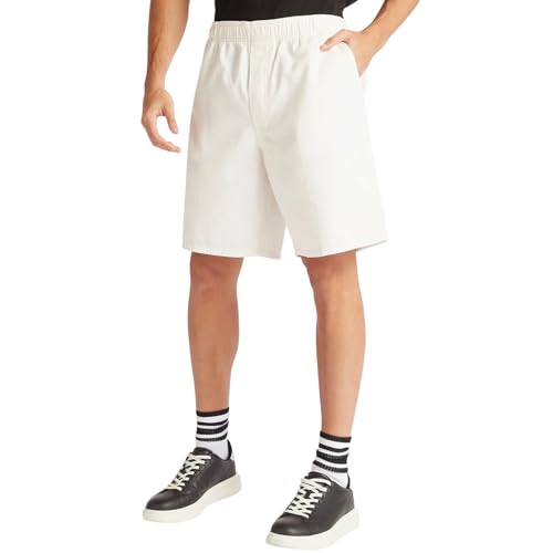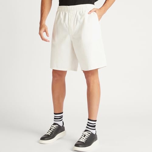 Splash - سبلاش شورت جينز سادة بحزام خصر مطاطي وجيوب بلون ابيض - مقاس L 6292374339570