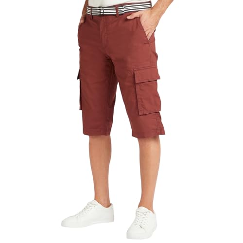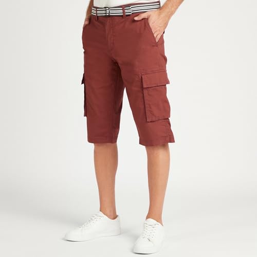 Splash - سبلاش شورت كارجو سادة متوسط الارتفاع بجيوب وحزام احمر - مقاس 32 6292374147793