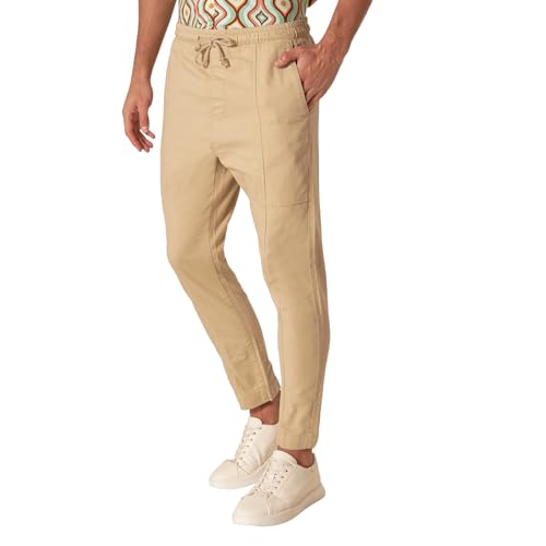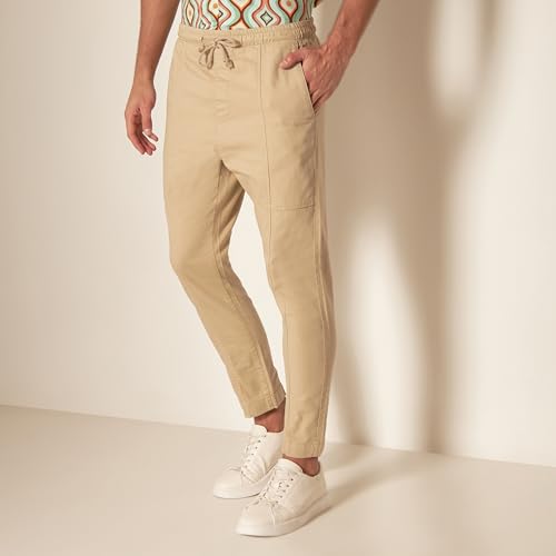 Splash - سبلاش بنطلون سادة برباط للاغلاق وجيوب بلون بيج - مقاس S 6292382643249