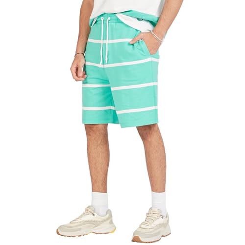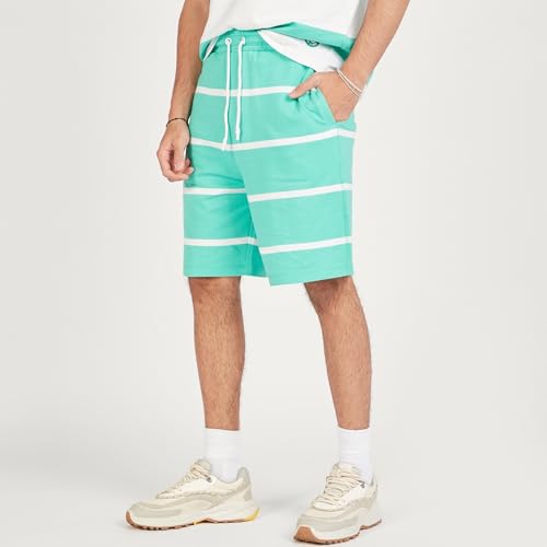 Splash - سبلاش شورت مخطط متوسط الارتفاع برباط للاغلاق وجيوب اخضر - مقاس S 6292376238680