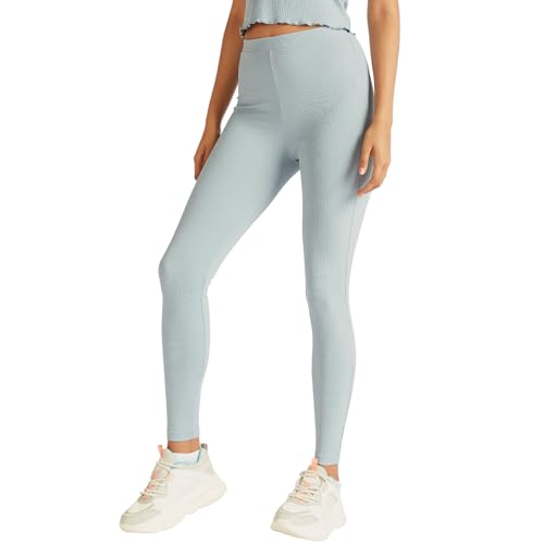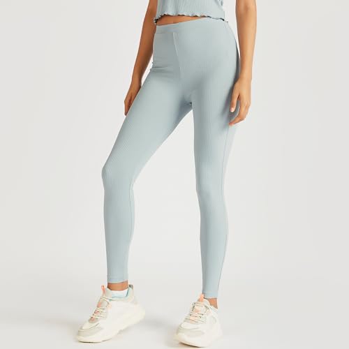 Splash - سبلاش بنطلون لجينجز منسوج مرتفع الخصر مع حزام خصر مطاطي ازرق - مقاس 10 6292374167005