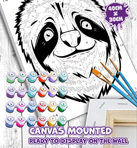 - محتويات المجموعة - 1 × لوحة قماش مسبقة التمدد ومُحاطة بإطار، بتصميم "كسلان غابة" للرسم بالأرقام، 24 × لون أكريليك، 3 × فرشاة للرسم. (1 × صغير، 1 × متوسط، 1 × كبير). بعض تصاميمنا تتضمن لون نيون مضيء تحت الأشعة فوق البنفسجية. تتضمن تصميماتنا الفريدة من نوعها بالأرقام خطوطًا سوداء سميكة تعزز فنك. نستخدم أيضًا عملية طباعة خاصة على القماش لجعل الأرقام أخف من الخطوط بحيث يغطي الطلاء الأرقام حتى مع الألوان الفاتحة. يرجى ملاحظة أن بعض الألوان الفاتحة قد تحتاج إلى طبقتين في بعض الأماكن ولكن هناك أكثر من لون كافٍ.