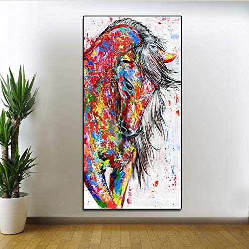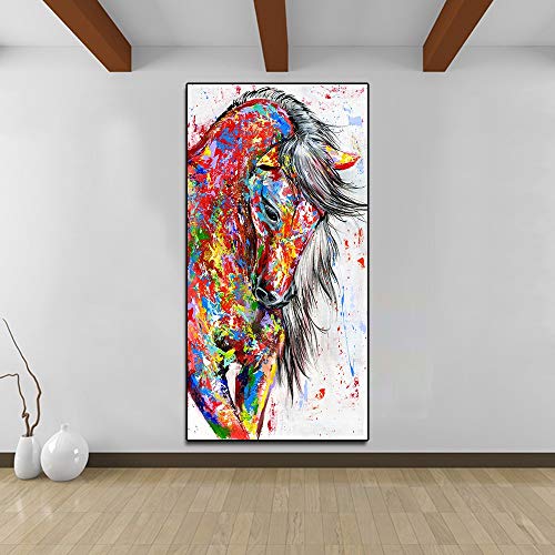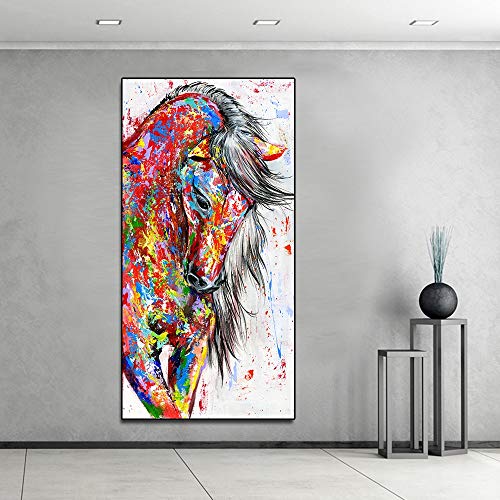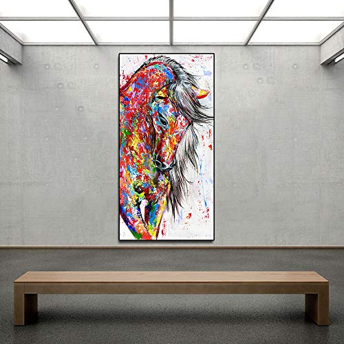 SPLLEADER - اس بي ال ليدر لوحة زيتية من القماش على شكل حيوانات، لوحات فنية جدارية لغرفة المعيشة وديكور المنزل، لوحة قماشية على شكل حصان احمر بدون اطار (مقاس: 20 × 40)