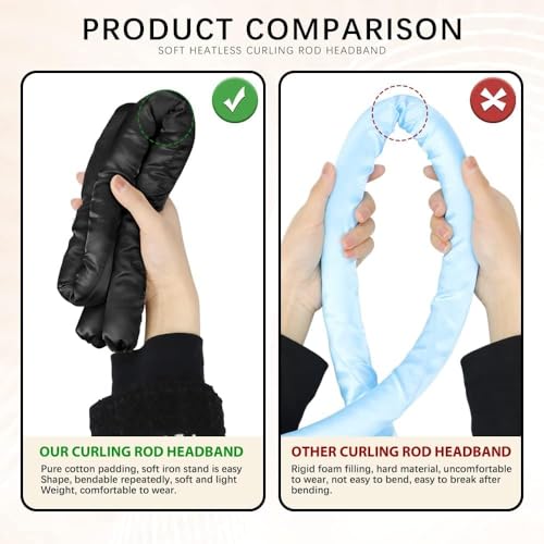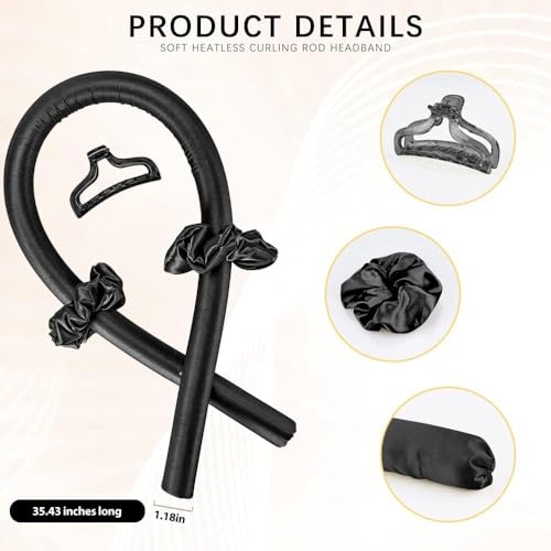 SPOKEN - شريط رأس لتجعيد الشعر بدون حرارة من سبوكن– بكرات شعر مريحة للنوم للشعر الطويل، بكرات تجعيد شعر بدون حرارة، شريط لتجعيد للشعر بطريقة آمنة وفعالة بدون استخدام أدوات حرارية (لون أسود)