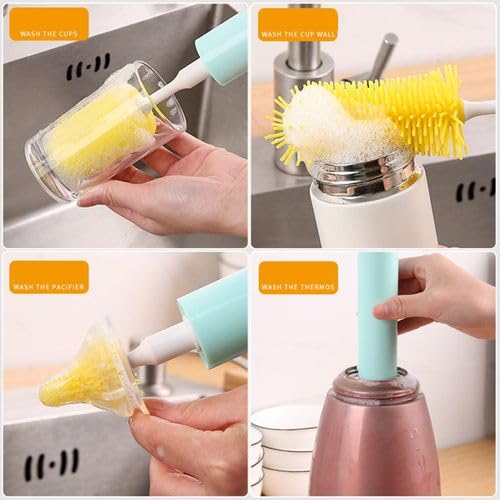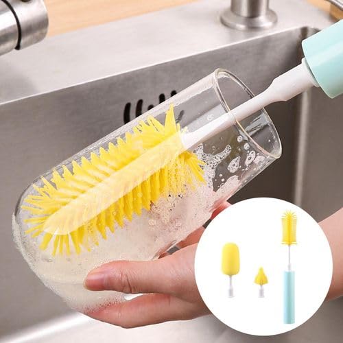 - تصميم متعدد الاستخدامات: مجموعة فرش مطبخ مكونة من 3 قطع تتميز بفرشاة برأس إسفنجي وملحقات تنظيف مختلفة الحجم باللونين الأخضر الفاتح والأصفر