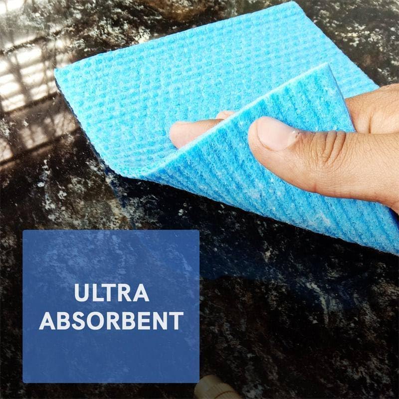 - أداء فائق الامتصاص – مصنوعة من إسفنج السليلوز عالي الجودة الذي يمتص الماء والسوائل بسرعة، مما يجعل التنظيف سريعًا وفعّالًا.