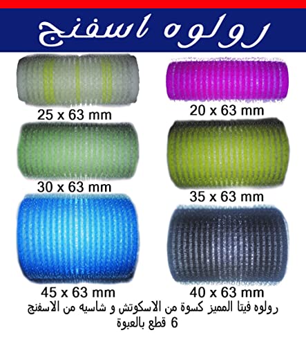 - بكرات شعر إسفنجية، عبوة من 6 قطع.
