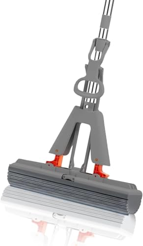 Generic - مماسح مطاطية للتنظيف، ممسحة ذاتية العصر لأرضيات البلاط في الحمام والمطبخ، ممسحة للأرضيات الخشبية مع إسفنجة، افضل مماسح للتنظيف بمقبض من الستانلس ستيل
