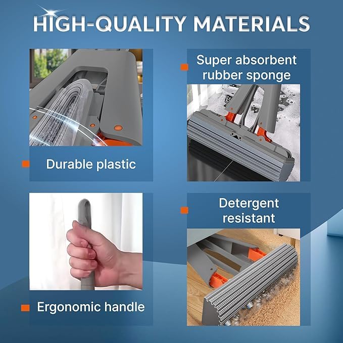 - ممسحة ماصة عالية الجودة: الممسحة المزودة بإسفنجة PVA تزيل ما يصل إلى 90% من المياه، ما يجعلها مثالية لتنظيف الأسطح الملساء بسرعة وكفاءة. مسحة الأرضيات هذه تتيح تنظيفًا سهلًا دون الحاجة إلى لمس الرأس المبلل