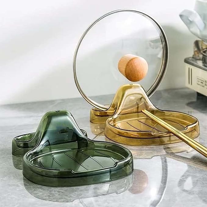 Generic - مسند ملعقة وغطاء، مسند معالق مع حامل غطاء، مسند معالق خالٍ من التنقيط لسطح الموقد، حامل معالق انيق لطاولة المطبخ، حامل متعدد الوظائف للمطبخ (اصفر)