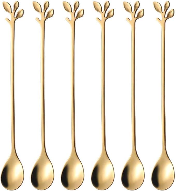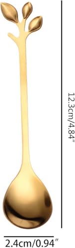 Generic - ملاعق من 6 قطع من الستانلس ستيل على شكل ورقة شجر ذهبية للقهوة والشاي والايس كريم وادوات المائدة والحلويات، ملعقة تقليب للمطبخ، 12.5 سم
