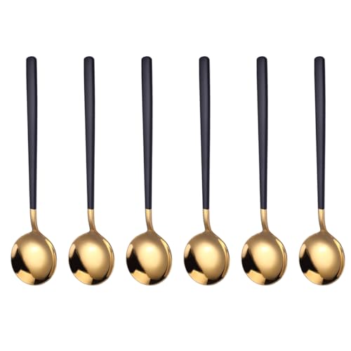 Gegaoicom - مجموعة ملاعق شوربة كورية من الفولاذ المقاوم للصدأ 18/10 من 6 قطع (أسود ذهبي)
