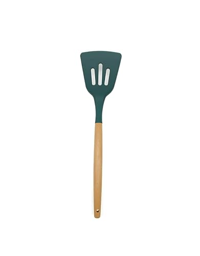 Daga - معالق طهي من السيليكون الممتاز المقاوم للحرارة مع مقابض خشبية مقاومة للالتصاق لتقديم الطعام والاومليت، متعددة الألوان (شكل 1)