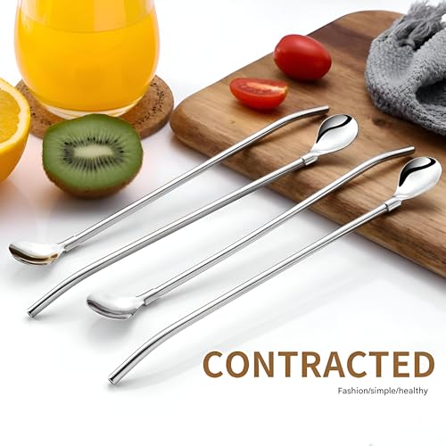 Generic - مجموعة ملاعق - 6 قطع من ملاعق الشرب 2 في 1 من الستانلس ستيل مع فرشاة تنظيف للمشروبات الصيفية والكوكتيلات (فضي)