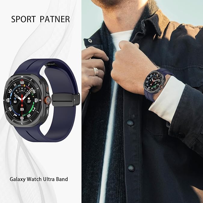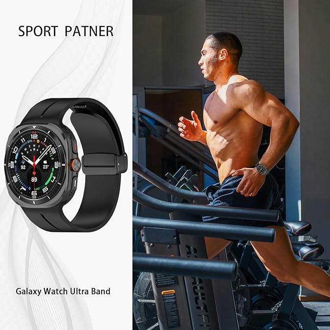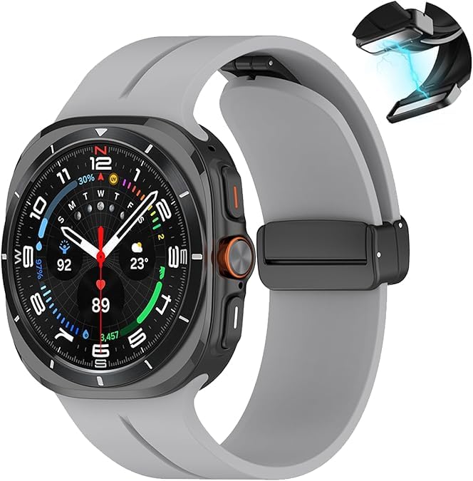 Khxriypha - سوار رياضي متوافق مع ساعة سامسونج جالاكسي 7 الترا 47 ملم (2024)، سوار معصم رياضي ناعم من السيليكون المغناطيسي جيد التهوية لساعة جالكسي ووتش الترا للرجال والنساء - رمادي
