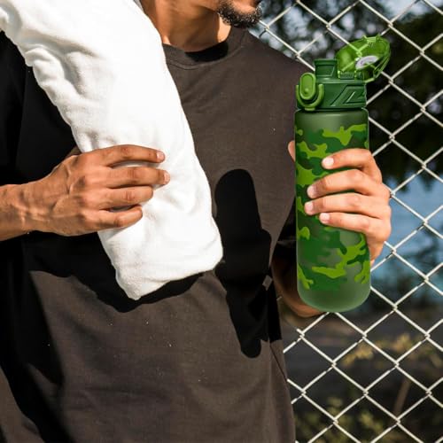 Generic - زجاجة مياه رياضية مموهة - مقاومة للتسرب، محمولة ومتينة لصالة الالعاب الرياضية واللياقة البدنية مع حزام، خالية من البيسفينول ايه، 700 مل، اخضر