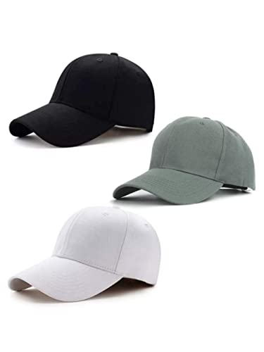 Generic - قبعات رياضية (اسود، ابيض، رمادي غامق)- مجموعة من 3 قطع, متعدد الألوان, Standard، للجنسين