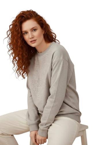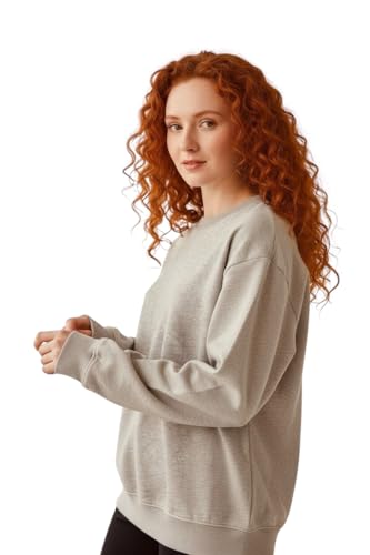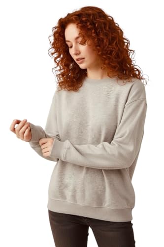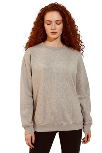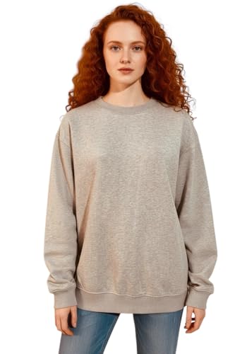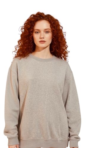 Generic - سويت شيرت كلاسيكي رياضي، لون رمادي مائل للبيج، قطن مريح، تصميم عصرى المقاس لارج