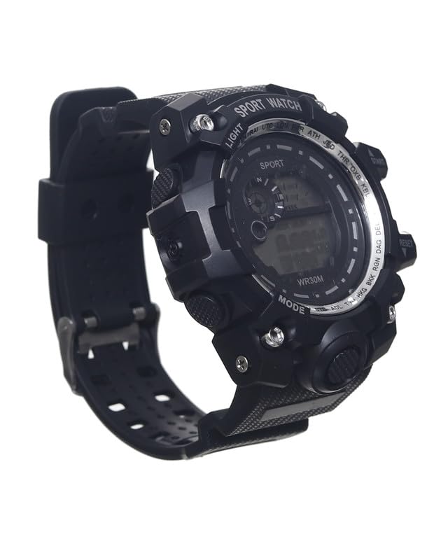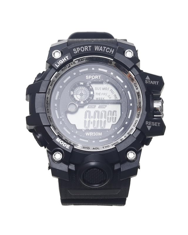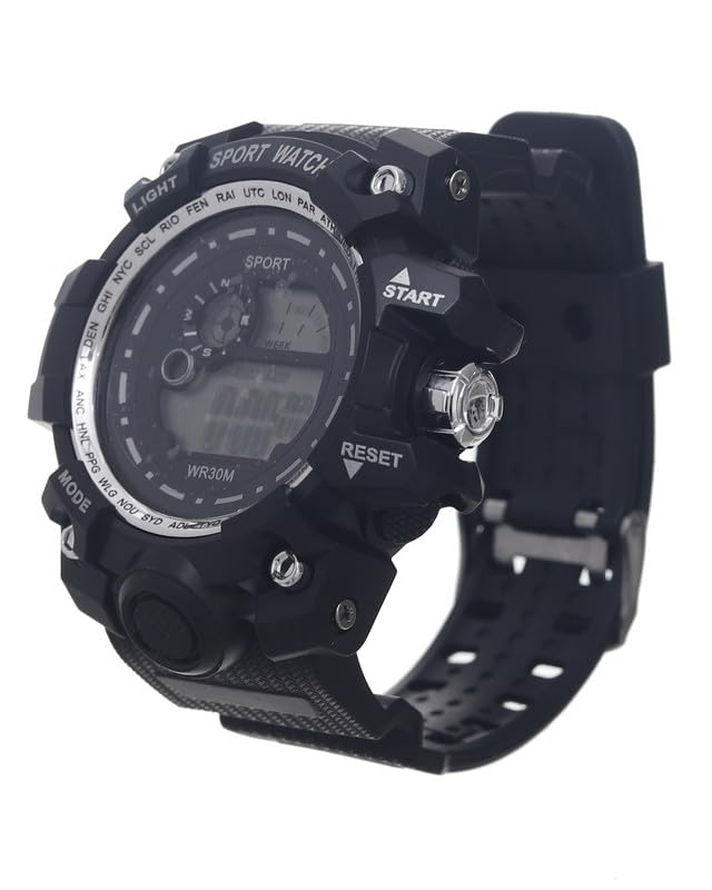 Generic - ساعة يد رياضية رقمية بمينا كبيرة وأضاءة LED سيليكون للجنسين ، أسود وفضي Sport-W-22
