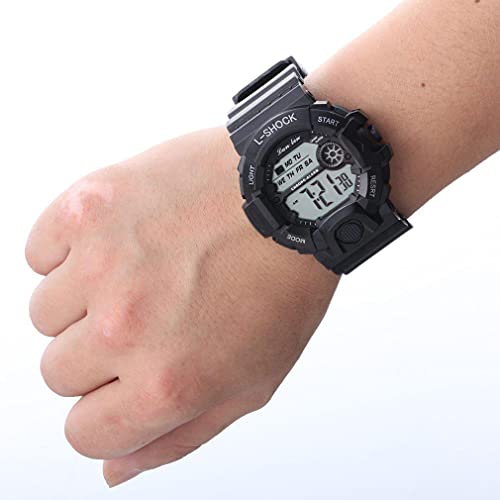 Generic - ساعة ديجيتال رياضية مقاومة للماء بإضاءة ليد وساعة توقف وتقويم للاطفال 2725245112537، بسوار أسود