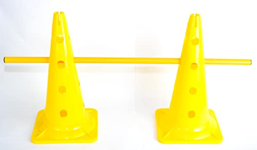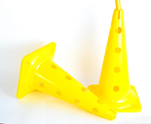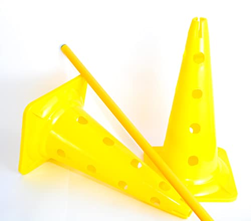 Sport One - مجموعة من مخاريط التدريب متعددة الوظائف مع 16 فتحة بمقاس 52 سم - أصفر مع عصا بلاستيك صفراء، طقم من قطعتين