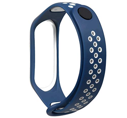 Generic - سوار بديل من السيليكون لسوار شاومي سلسلة 4 لون أزرق غامق مع الأبيض، للجنسين عدد 1