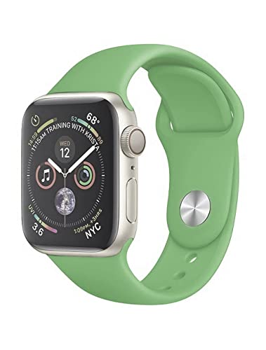 watch strap - سوار ساعة رياضي بديل مصنوع من السيليكون المقاوم للعرق بدبوس قفل مزدوج لساعة آبل مقاس 36-40 ملم، 41-40 ملم سلسلة 7 2022 (أخضر فاتح)