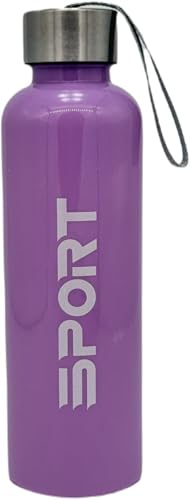 Generic - زجاجة مياه رياضية من الفولاذ المقاوم للصدأ باللون الأرجواني معزولة بحزام حمل سعة 600 مل