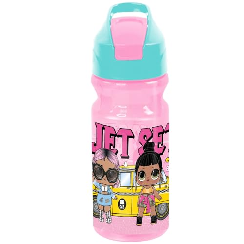 - مزايا التصميم: زجاجة مياه أنيقة باللون الوردي والفيروزي مع تصميمات شخصية مرحة وغطاء علوي قلاب آمن لسهولة الشرب