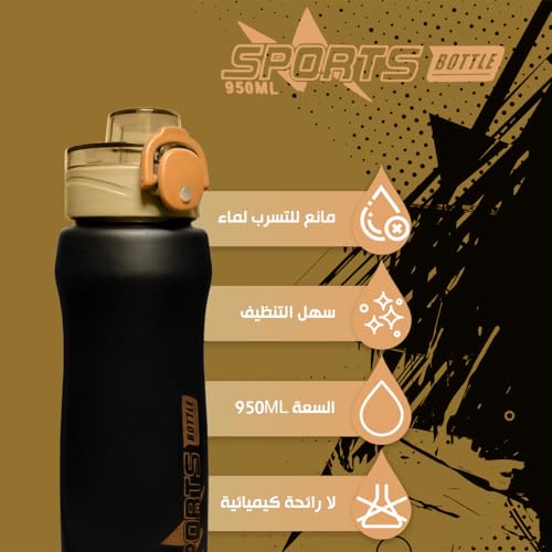 Generic - زجاجة مياه رياضية مقاومة للتسرب محمولة ومتينة مزودة بحزام خالية من البسفينول أ مناسبة للأنشطة الخارجية والجيم، سعة 950 ملليلتر (لون أصفر)