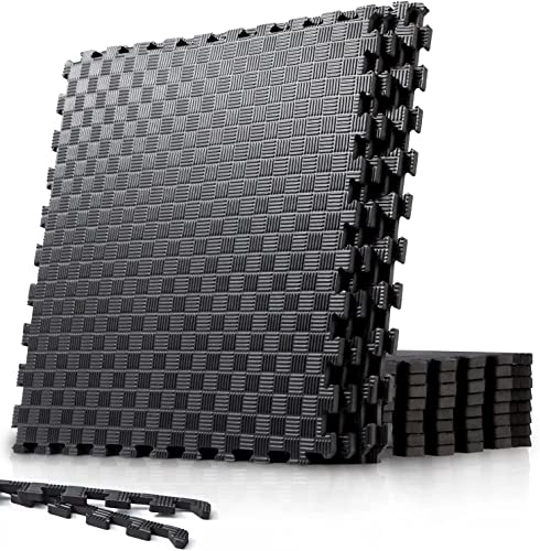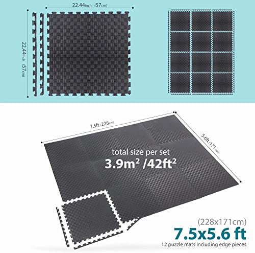 Sportneer - سجادة ارضية من الفوم للصالة الرياضية، 12 قطعة 42 قدم مربع 12 ملم، مصنوعة من خامة ايفا، بلاط فوم ارضي بتصميم متداخل، مناسبة للكراج والجاكوزي المنزلي